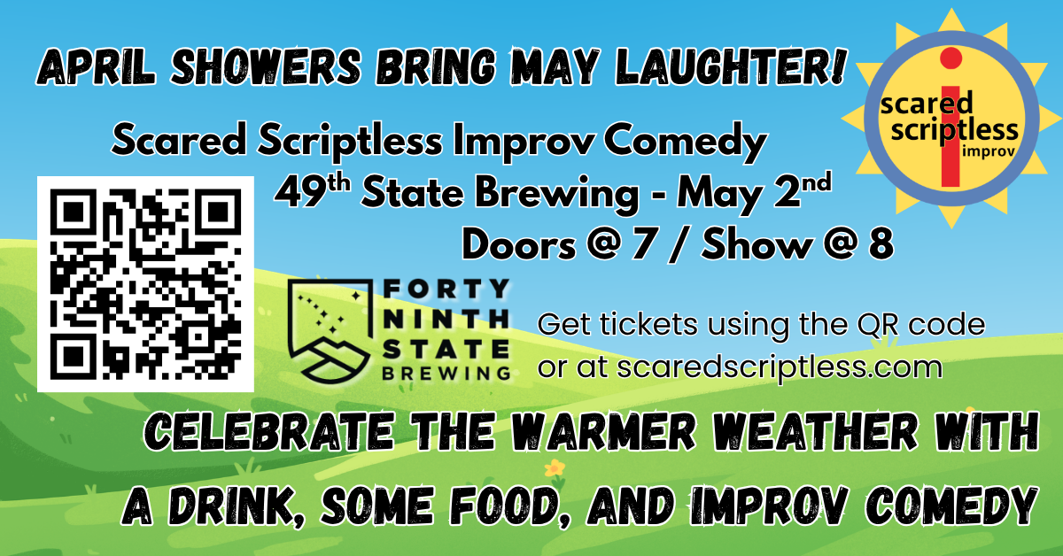 We’ve added another date at 49th State Brewing. You love seeing us in the Barrel Room East and we love bringing you improv comedy there. Join us for one more spring evening of laughs before the tourists arrive.
